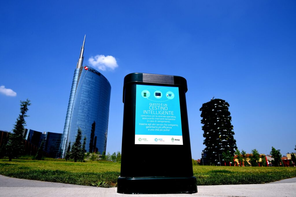 Gli Smart Bin sono cestini intelligenti che monitorano in tempo reale il loro stato di riempimento grazie a dei sensori posti all’interno degli stessi. La tecnologia è supportata dalla rete LoRaWAN, che opera su lunghe distanze e con un basso consumo energetico.